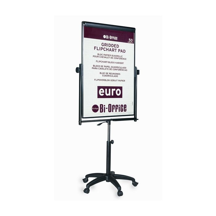 Gas-lift height adjustable mobile flipchart easel. Easy-glide lockable castors.
