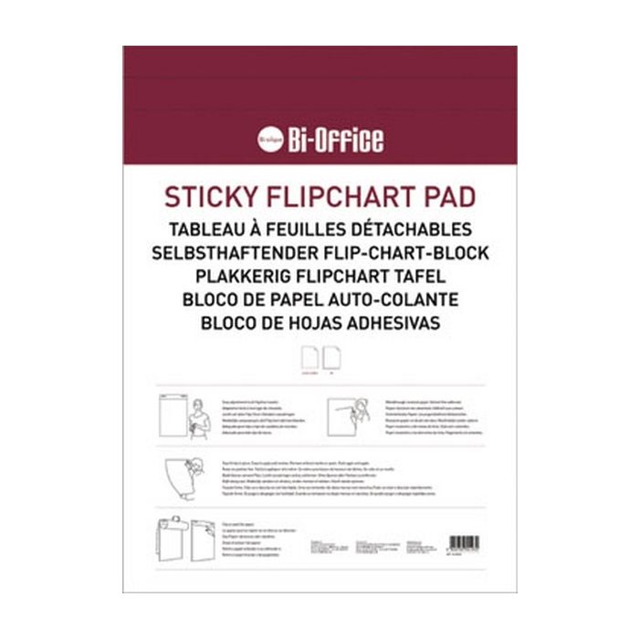 Self adhesive flipchart pad with high-quality bleedproof paper. 30 sheets per pad.