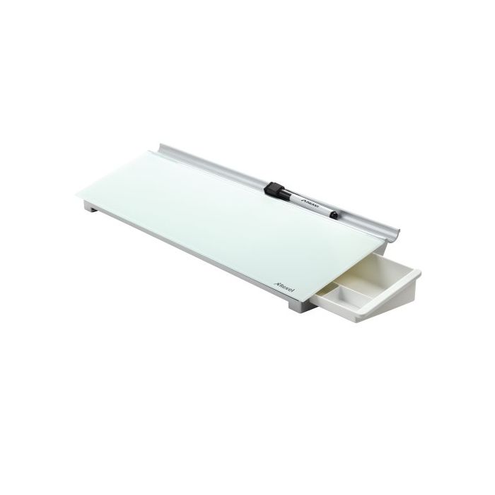 Stylish and three times easier to clean! The Nobo Diamond Personal Desktop Pad has a tempered safety glass surface suitable for frequent use due to its ultra-erasability and the highest resistance to ink stains, pen marks, scratches and dents. Unique glass desktop pad developed by Rexel is a stylish and re-useable alternative to paper based note taking. Concealed desk tidy for pens, paper clips etc. Supplied with a marker pen.