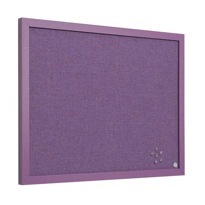 Bi-Office Noticeboard Lavender with Purple Frame 600 x 450mm This Lavender notice board is elegant and beautiful, designed to fit in home office spaces. Easy to fix on walls and really simple to use. Frame your photos and hold your messages. With its purple frame and fabric, this board will brighten up your day.