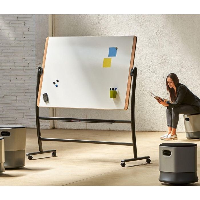 The Rocada Natural revolving whiteboard has a double-sided dry-erase lacquered surface and is magnetic. It rotates through 360 degrees and can be locked in any position. The lockable easy-glide castors allow the board to be easily moved and secured in position. Contemporary design in wood and lacquered steel. Well designed and made using high-quality materials, the board is practical and functional, and looks amazing!