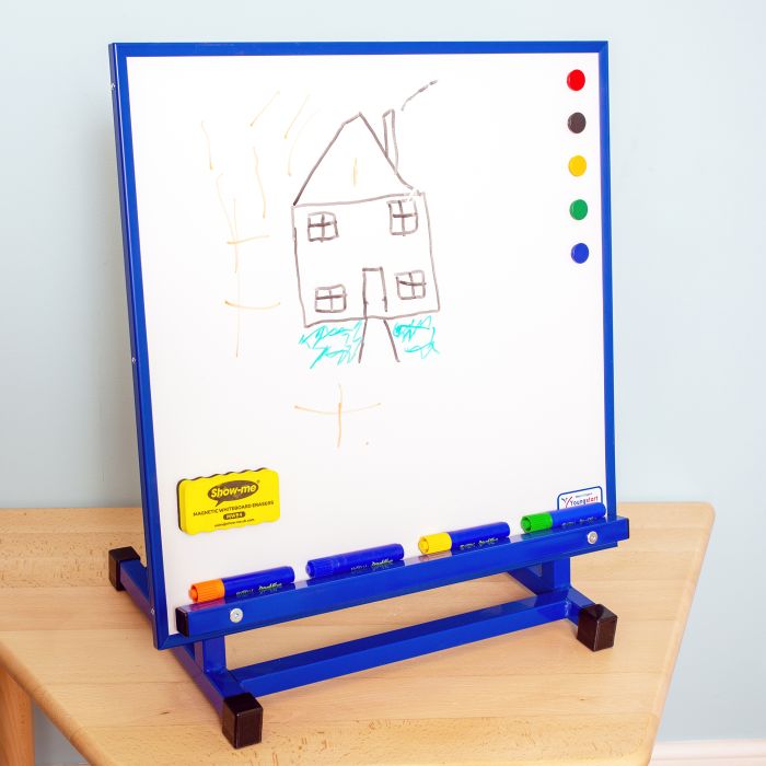 This large lightweight multipurpose desktop easel is extremely versatile and can be used anywhere in the school environment. It is magnetic and dry wipe and has a full length powder coated metal pen ledge.